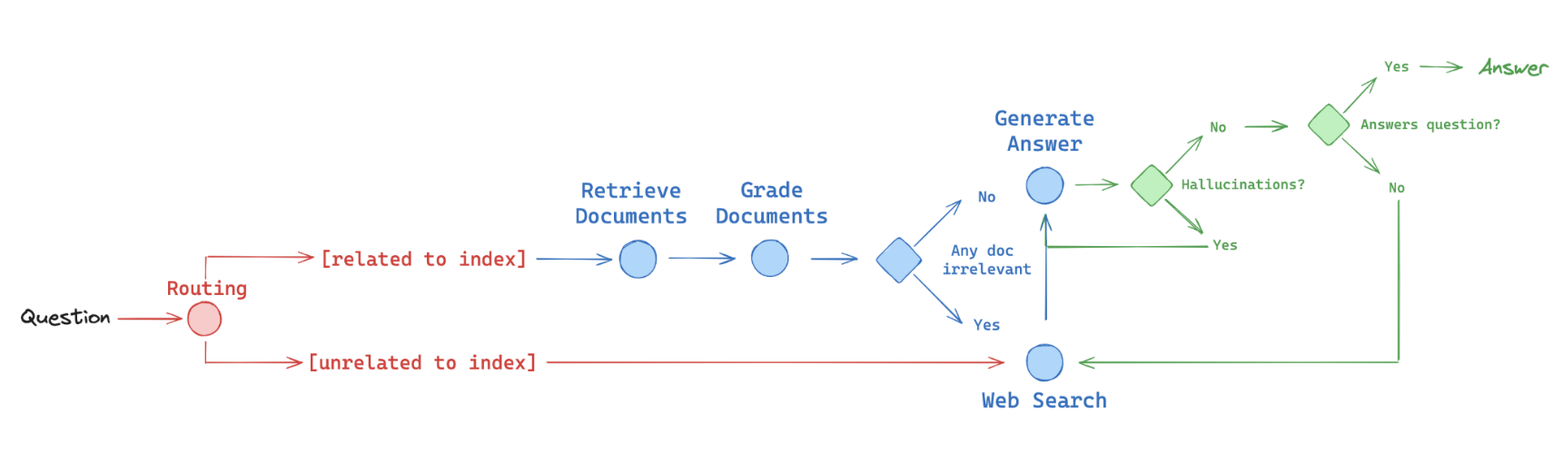 • Fallback: Corrective RAG (paper). Fallback to web search if docs are not relevant to query